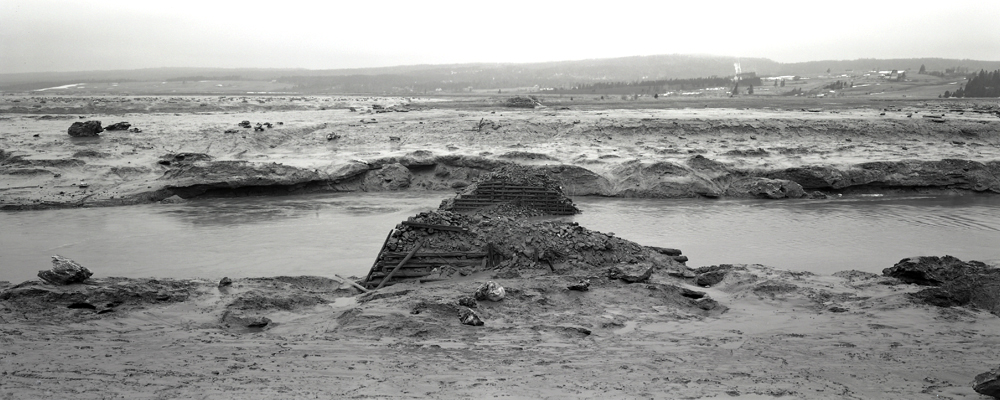 The Rockland Bridge: A series of views documenting the changing face of a site over a twenty year period. A longtime interest of mine is the transient way in which man and nature intersect, and the underlying message of man’s subserviance to nature. The Rockland Bridge series reflects on the history and poetics of a single location over a period of years. A single image whose componants are arrived to by time. The notorious tides of the Bay of Fundy contributed to the Bridges demise in 1978. In its day the Rockland Bridge was the second longest covered bridge in New Brunswick.